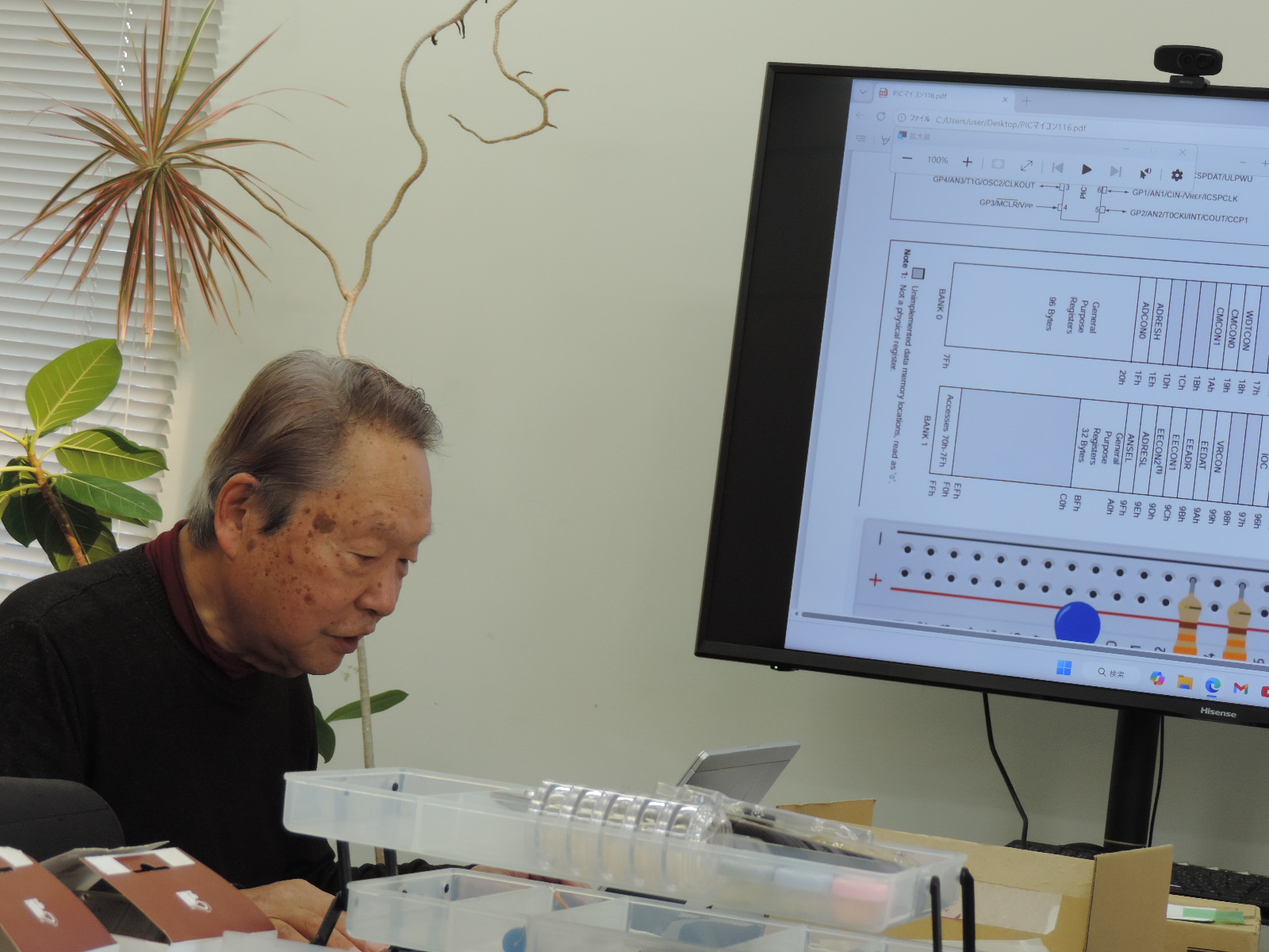 今年最初となる講習会では、前回に引き続きPICマイコンを使用し、タイマー割り込みによるカウントアップの実習を行いました。